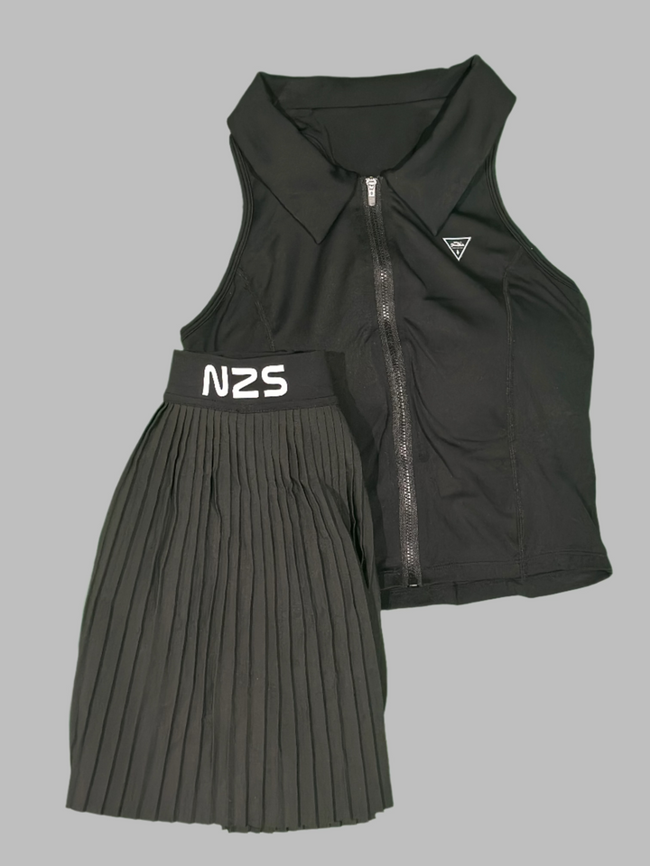Serve up serious style on and off the court with this Venus skirt set. Featuring a sleek, high-waisted pleated skirt paired with a form-fitting crop top.